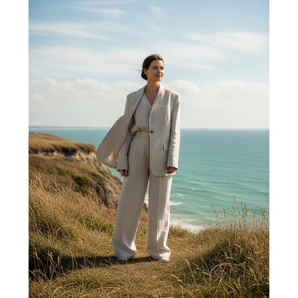 Structured blazers and sharp trousers are getting a summer-friendly makeover. The key fabric? Beautiful, breathable linen and linen blends. The cut is relaxed but intentional—think slightly oversized blazers with soft shoulders and wide-leg pants that float with your stride.