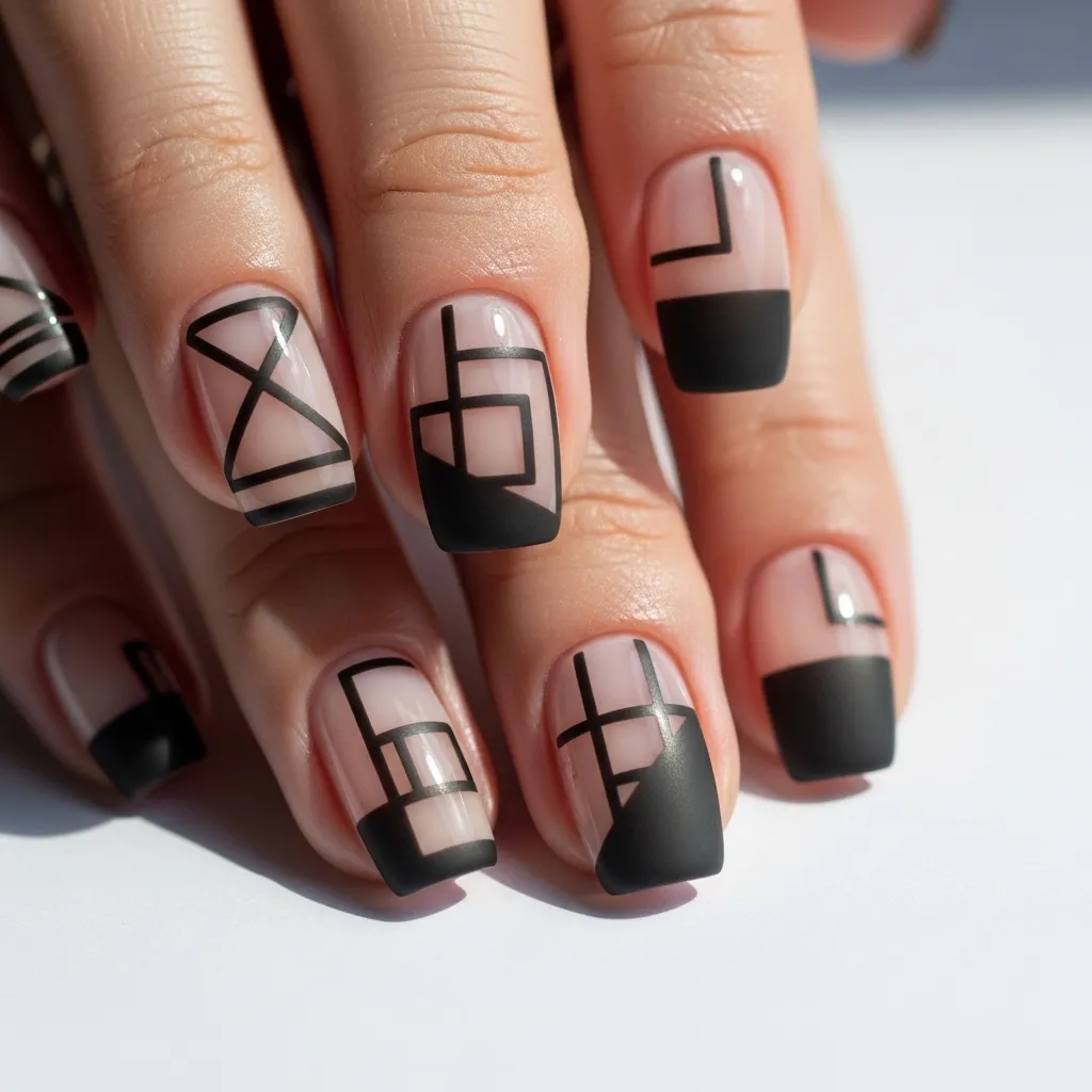 Negative space isn’t new, but the graphics are getting bolder. Think geometric cut-outs, abstract shapes, or even letters left as bare nail against a block of color. It feels fresh, architectural, and very modern.