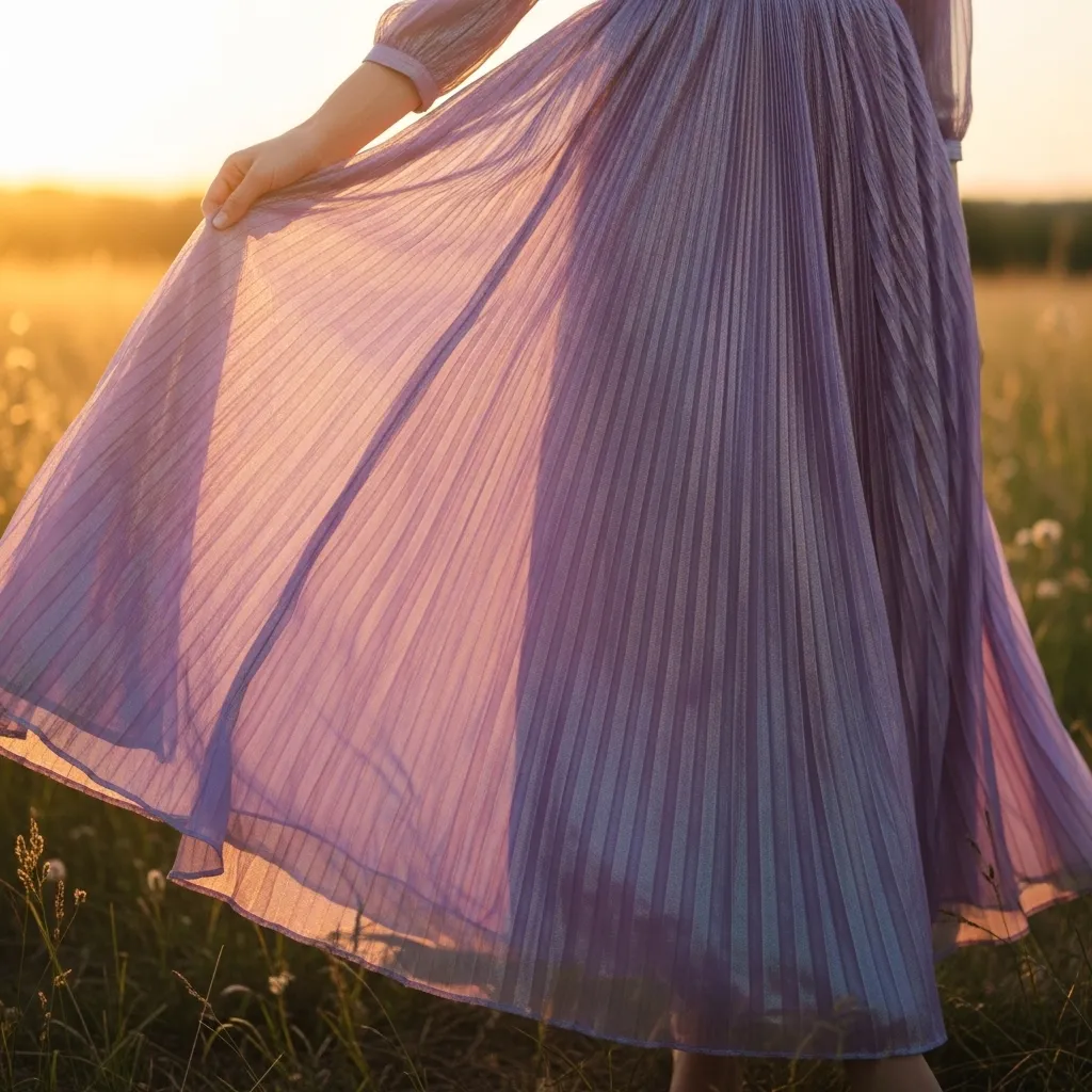 An iridescent lilac dress that shifts colors in the light is pure fairy-tale material. Choose a slip dress or a babydoll style that lets you move freely.