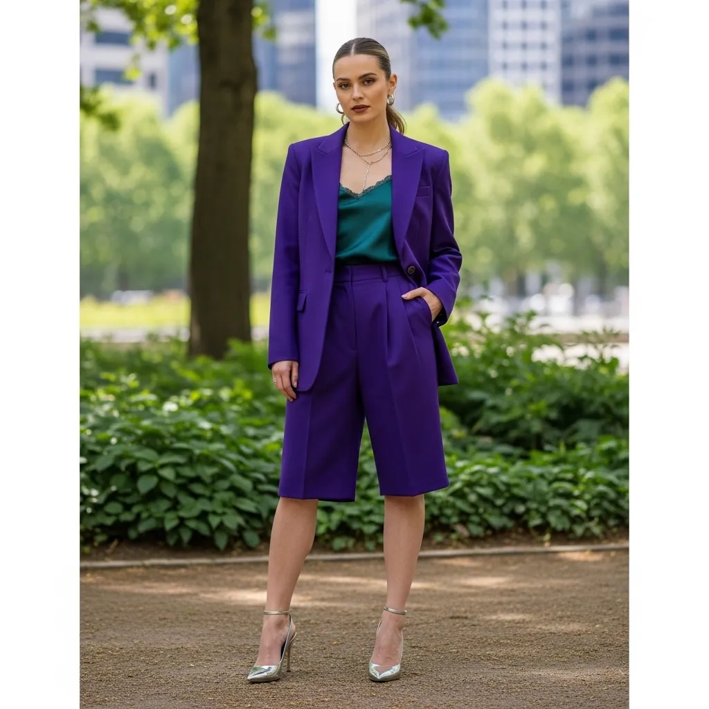 A coordinated set in a rich royal purple is effortlessly chic. Think a cropped blazer and tailored shorts or a cute skirt.