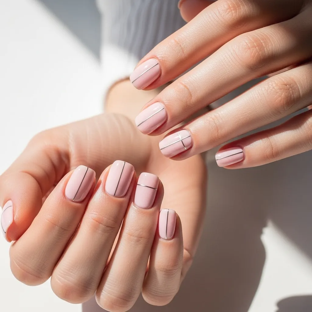 Sometimes, less is dramatically more. A sleek, thin silver line—vertical, horizontal, or diagonal—on a baby pink base creates a stunning minimalist statement. It’s clean, modern, and effortlessly cool.