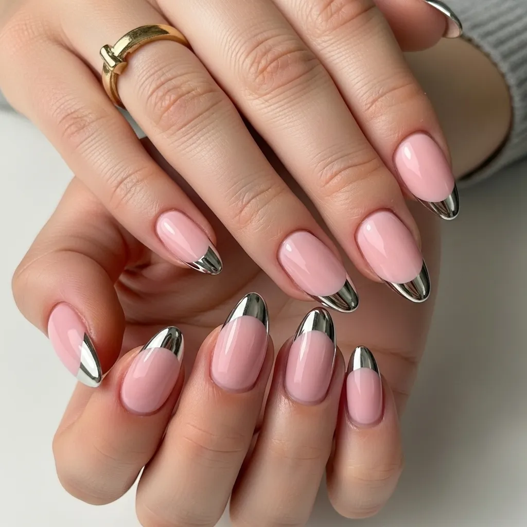 6. Pink Almond Nails with Chrome Accents