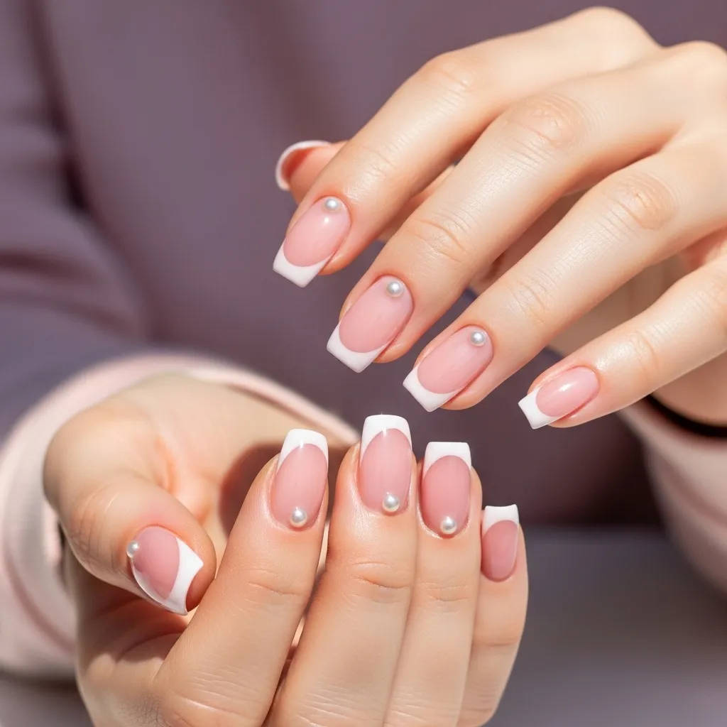 10. Pink French Tips with Pearl Accents