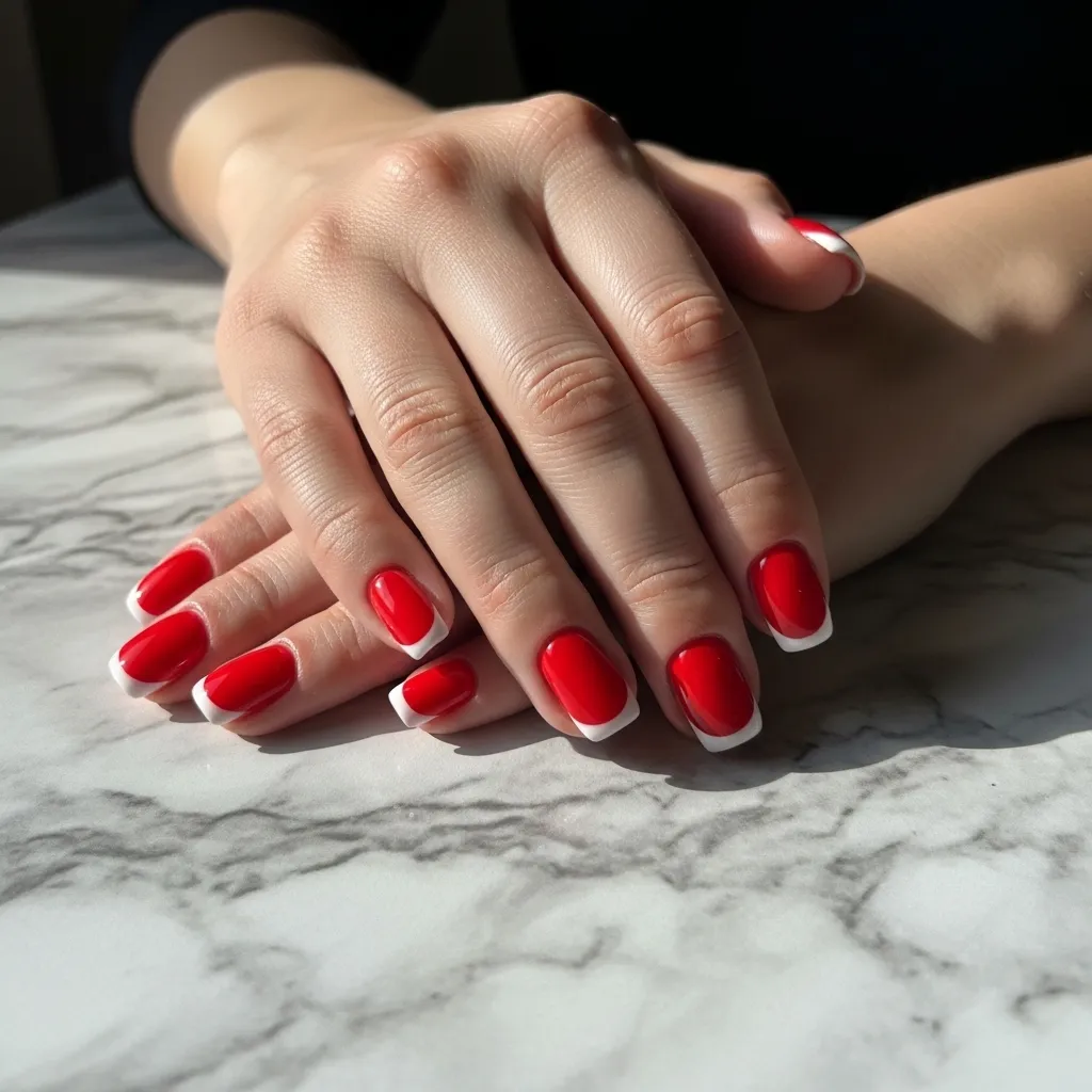 A twist on the traditional! Instead of a white tip, ask for a red French tip over a nude or clear base. It’s sophisticated with a surprising edge.