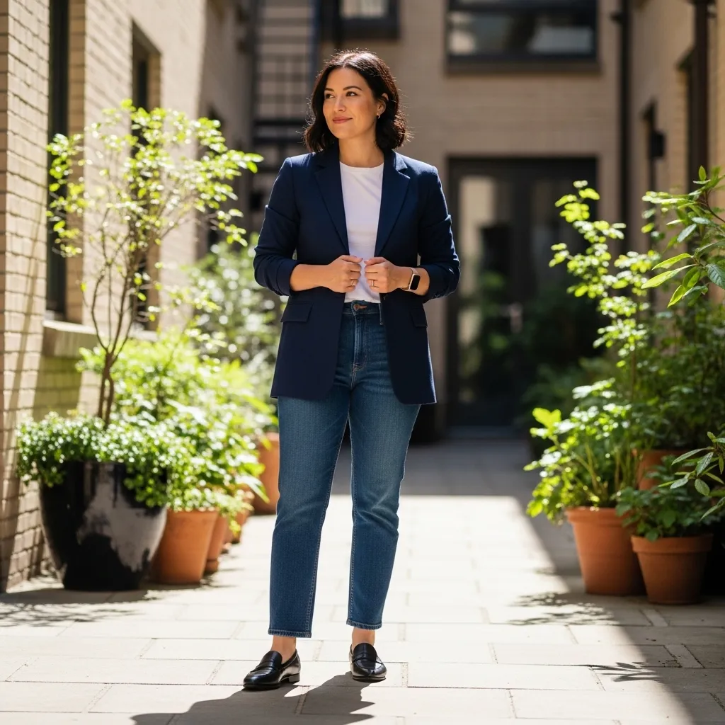 This is my ultimate trusty formula for “smart casual” days. The secret is in the details. Choose a blazer with a modern cut—not too boxy—in a classic color like navy, black, or camel.