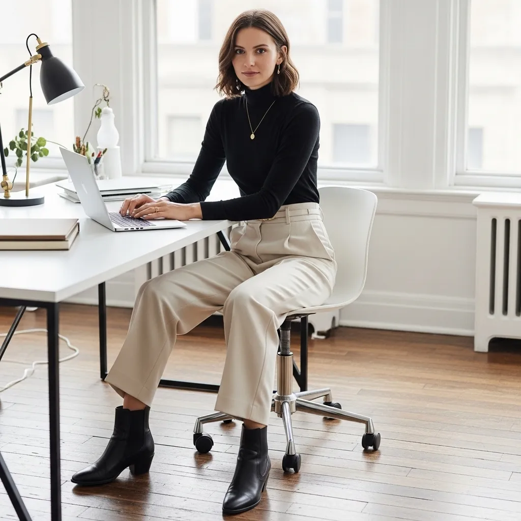 For a minimalist, intellectual vibe, this pairing is unbeatable. A fine-knit merino wool turtleneck feels luxurious and keeps you cozy. Tuck it into high-waisted, wide-leg trousers for a silhouette that’s both comfortable and commanding.