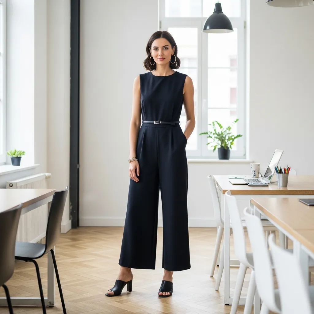A well-fitting jumpsuit is a game-changer. Look for one in a crepe or ponte fabric with a wide-leg or tailored silhouette. A belt is key to defining your waist.