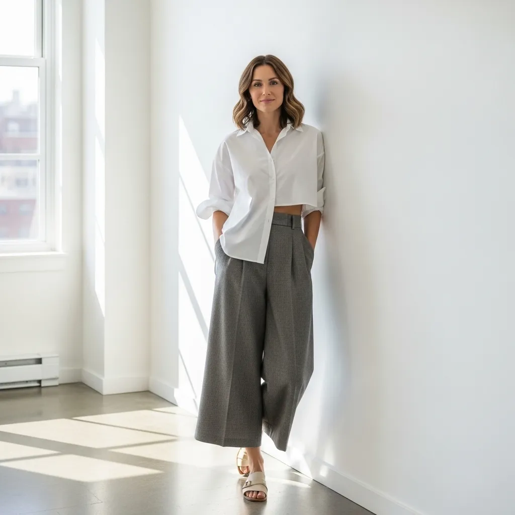 For a breathable, stylish option, try wide-leg culottes. They offer the comfort of pants with the elegance of a skirt. Tuck in a pristine white or striped button-down shirt.