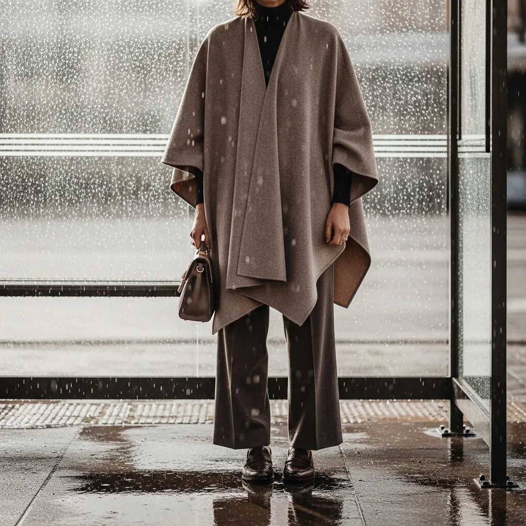 Ponchos are a seriously underrated rainy-day hero. A wool-blend or waterproof poncho feels elegant and dramatic. It’s roomy enough for thick sweaters underneath and easy to move in.