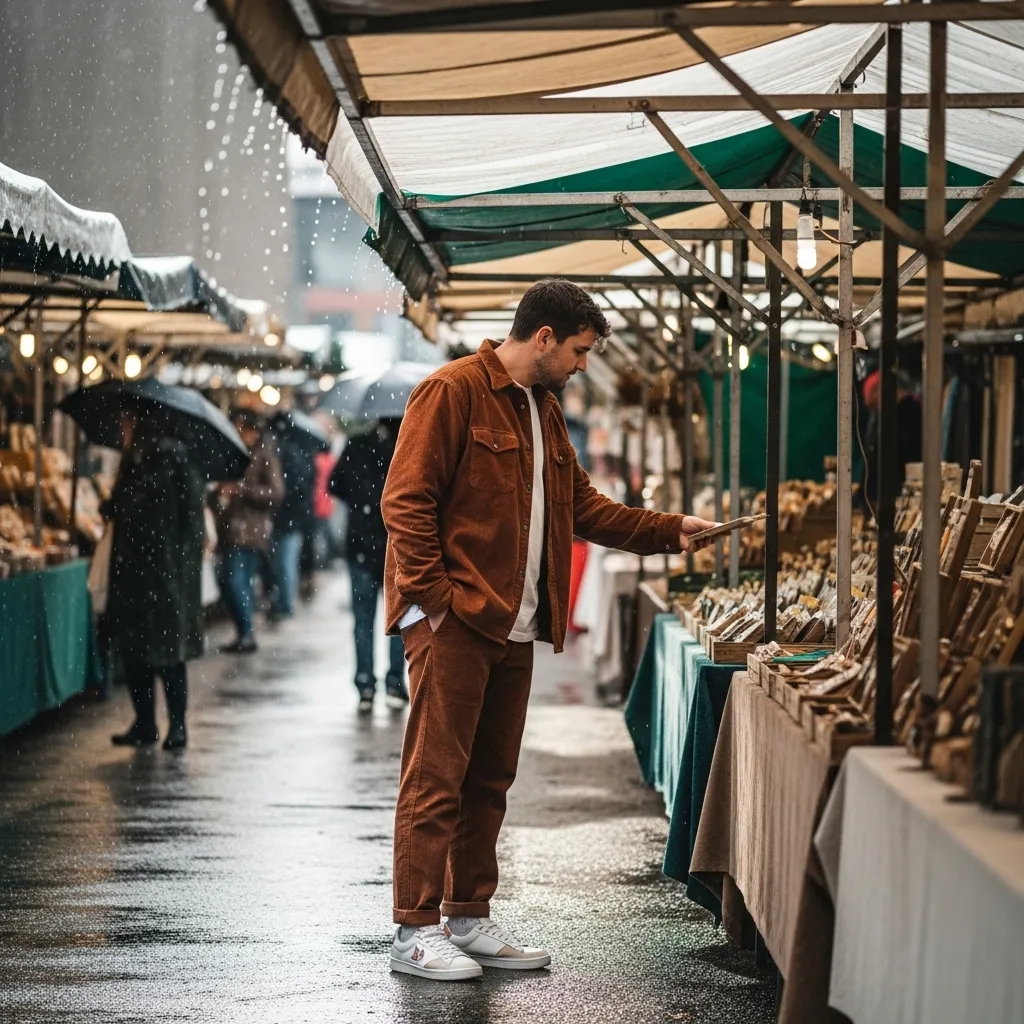 Because the fabric is sturdy, it handles moisture well. Layer over a thin thermal and add leather ankle boots. This outfit is all about rich, tactile vibes that make the rain feel intentional.