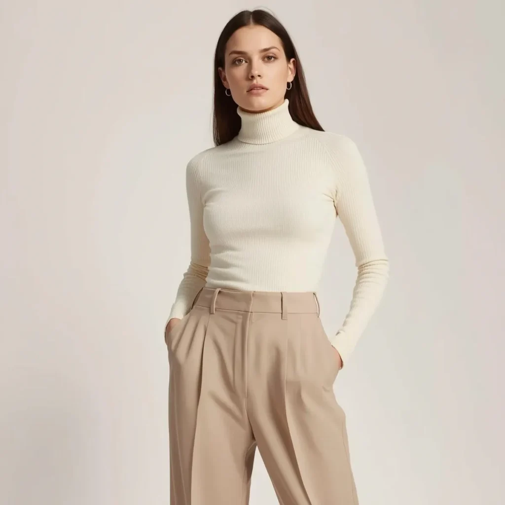 4. Turtleneck with High-Waisted Pants