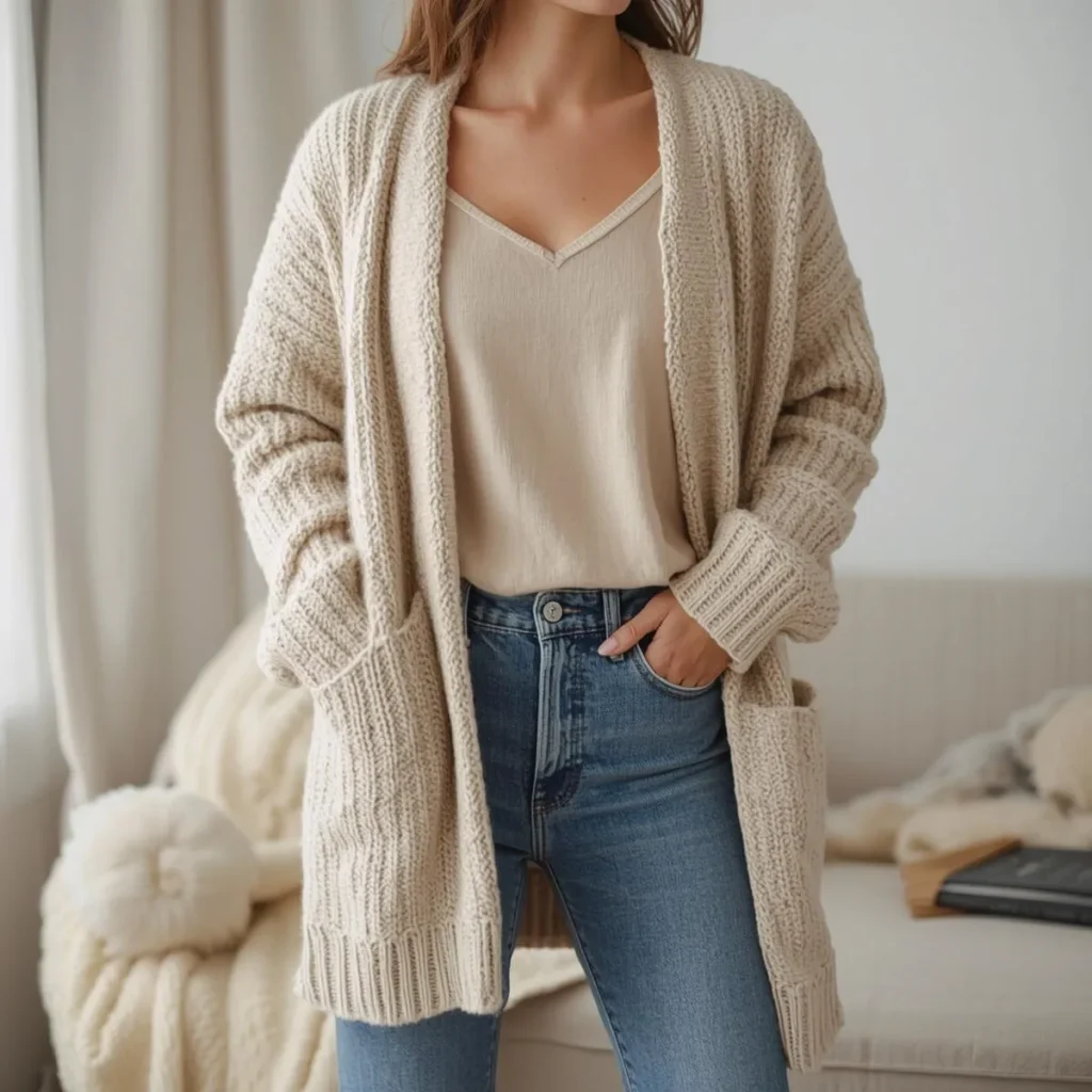 Cardigans feel like a soft hug in winter. I love layering them over neutral tops for an easy, relaxed look.