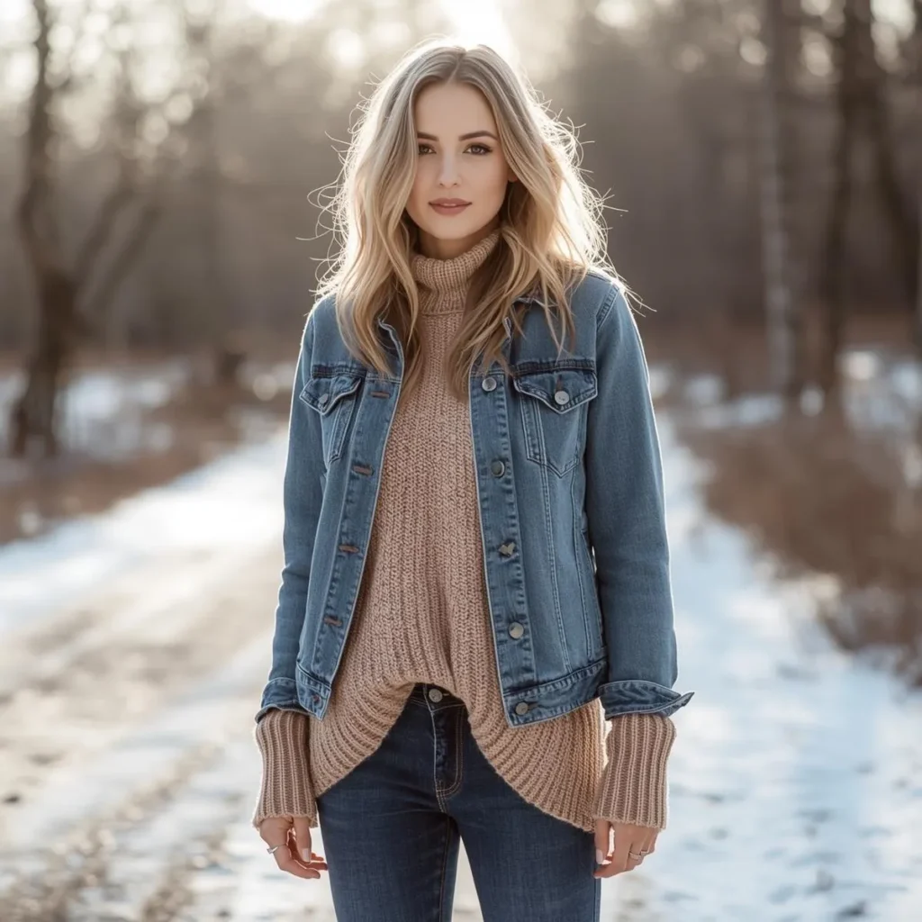 Layering a denim jacket over knits adds personality to winter outfits. It feels casual and familiar.