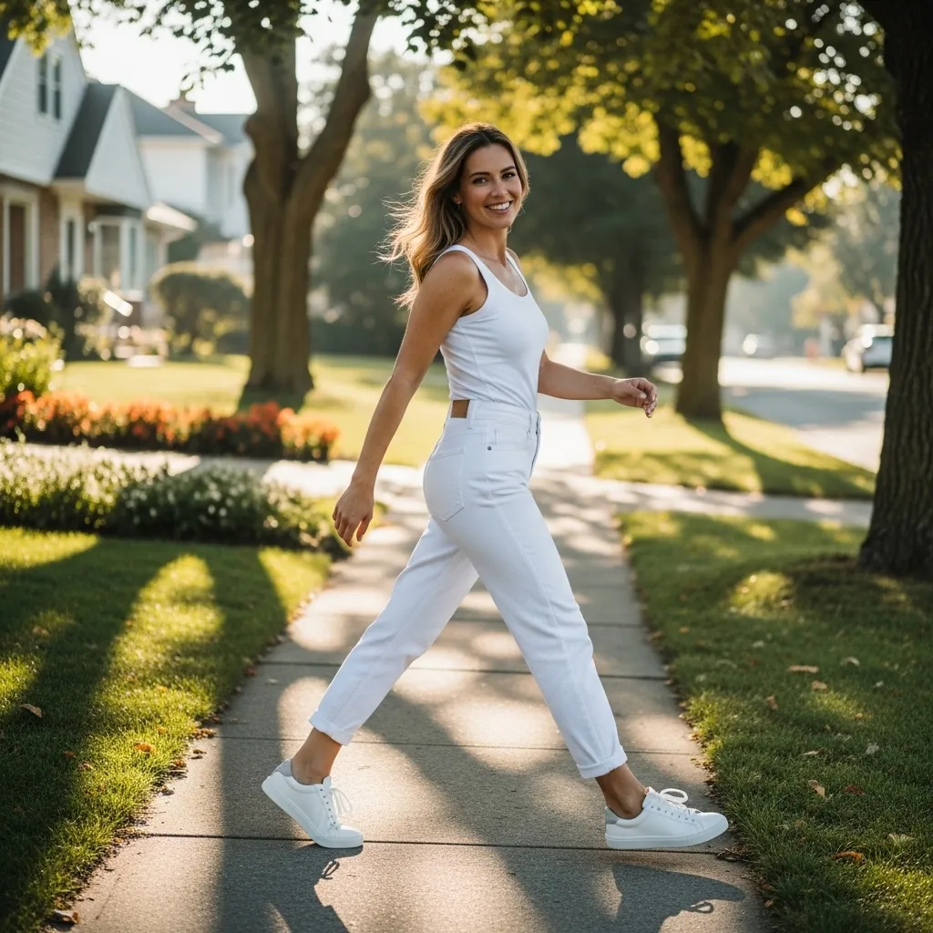 On my feet? My trustiest pair of white sneakers. Add some gold hoop earrings and a crossbody bag, and you look polished in under five minutes. It’s simple, but it always works.