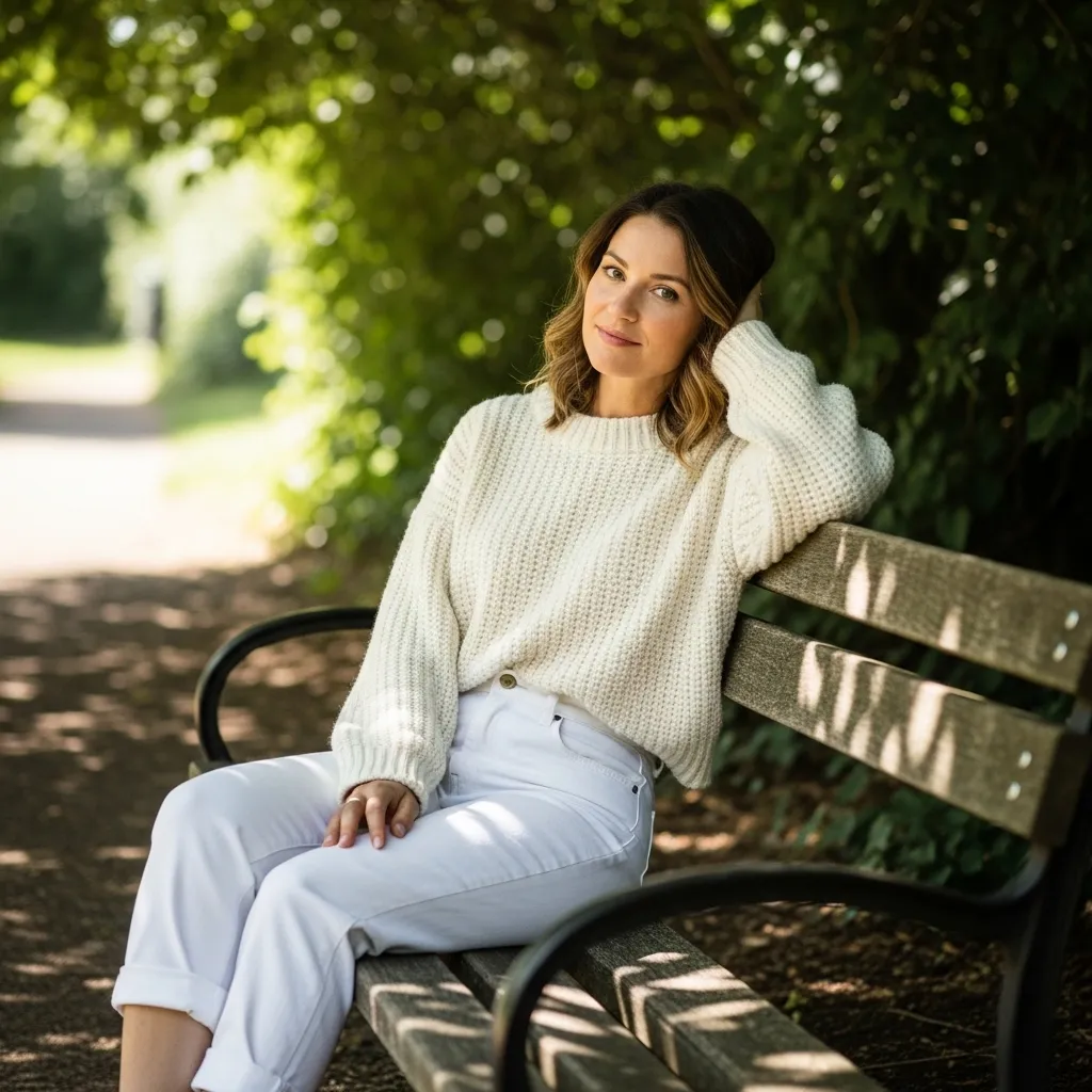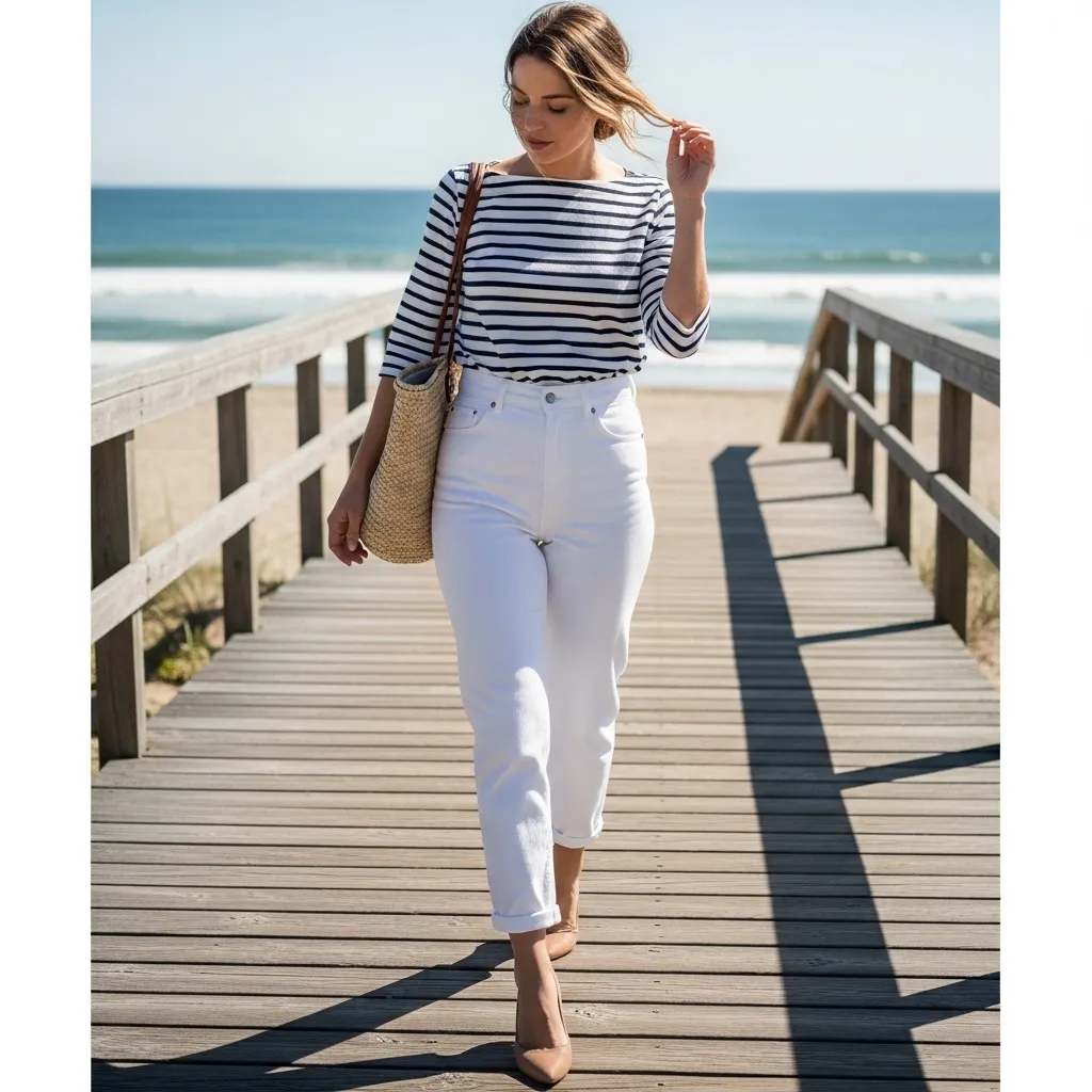 For cooler summer evenings or breezy days by the water, I love the contrast of a lightweight, oversized knit sweater with my crisp white jeans. Think open-weave cotton or linen blends.