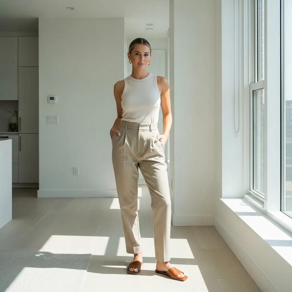 Focus on impeccable fit and luxurious fabrics. A perfect white tank, tailored trousers, a sleek slip dress, and a high-quality knit are the heroes. Jewelry is simple—think delicate gold chains and hoops.
