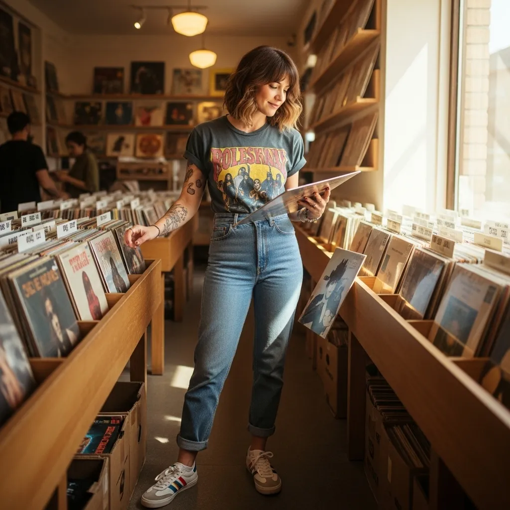 This look thrives on plaid flannel shirts tied around the waist, band tees, ripped black jeans, and chunky combat boots or worn-in Converse. A leather jacket is non-negotiable.