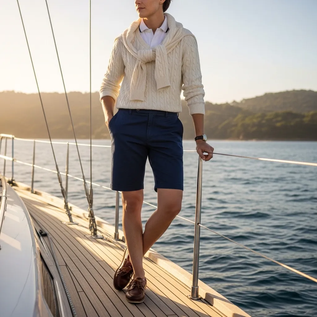 You can’t go wrong with a striped breton top, a collared polo dress, well-fitting chinos, and a cable-knit sweater. The look is always tidy and intentional.