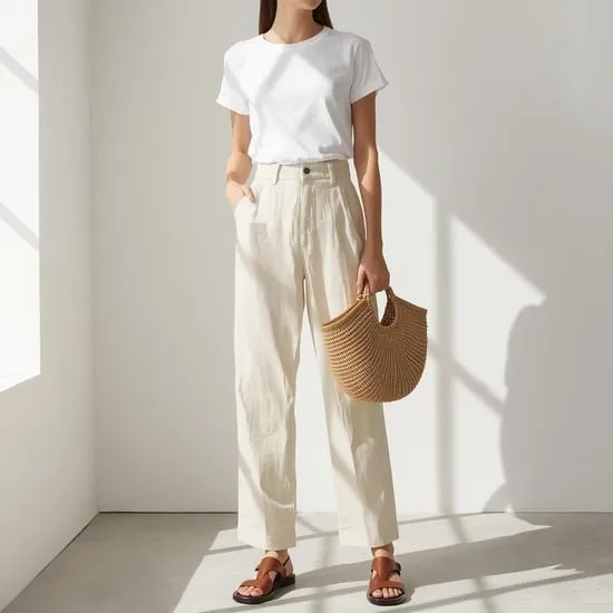 1. The Classic White Tee & Linen Trousers