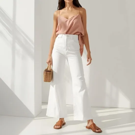This combo balances proportions beautifully—the volume on bottom is grounded by a fitted top. Add a belt to define your waist and a pair of block-heel sandals to elongate your silhouette.
