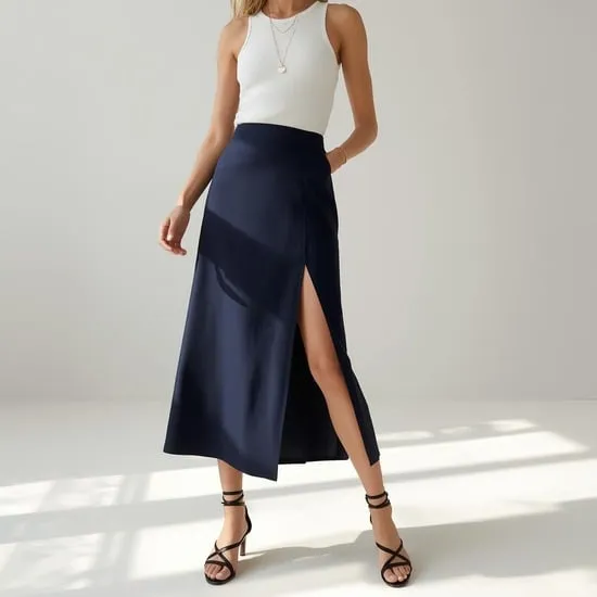 A flowy midi skirt is early summer perfection. It’s graceful, covers just enough, and moves beautifully. I pair mine with a simple ribbed tank top or a fitted cotton tee. Tuck the top in to highlight the skirt’s waistline.