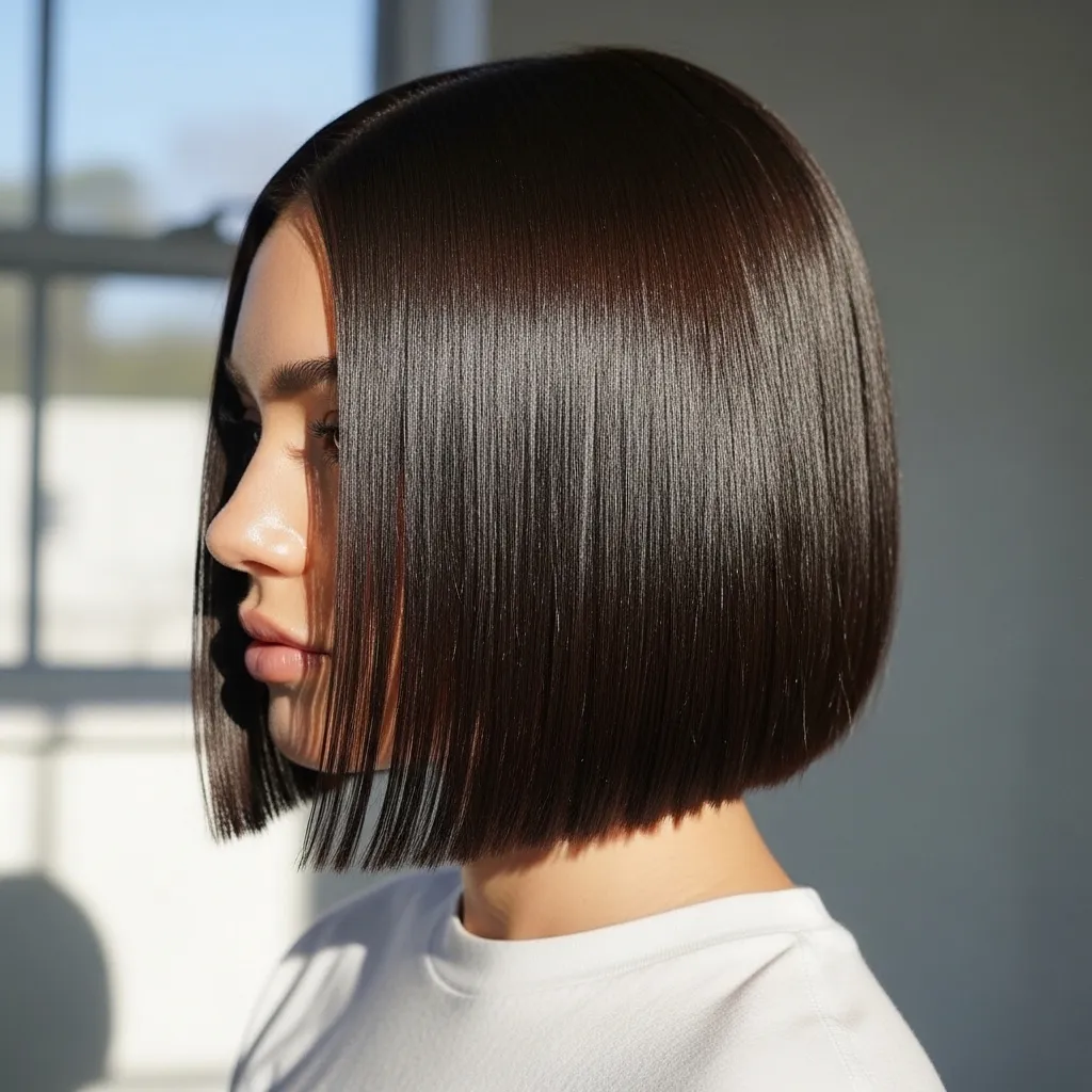 Precision is king with this trend. Think of a blunt, jaw-length bob with an impossibly smooth, sleek finish. It’s graphic, chic, and demands attention with its clean lines.