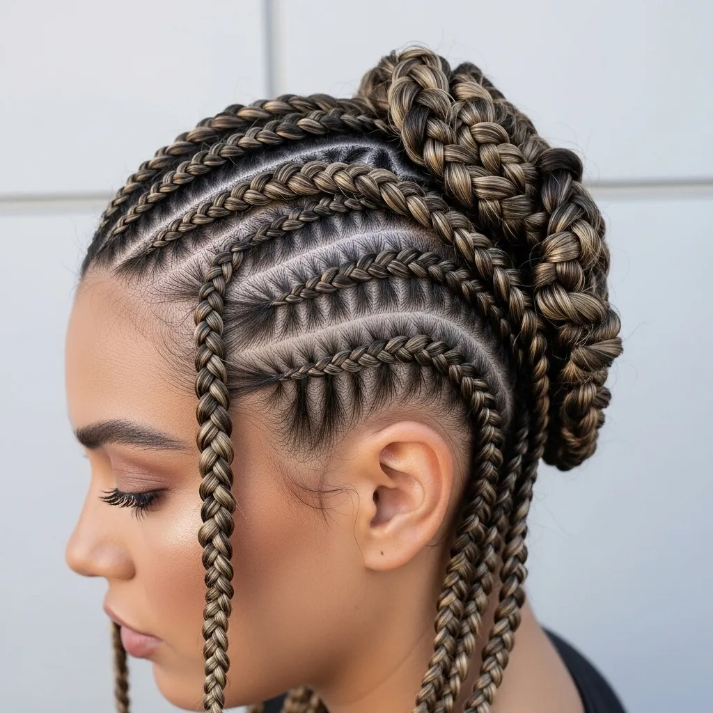 Braiding is getting a structural upgrade. Thick, rope-like braids or intricate, geometric plaits are being used as accent details, not just full-head styles.
