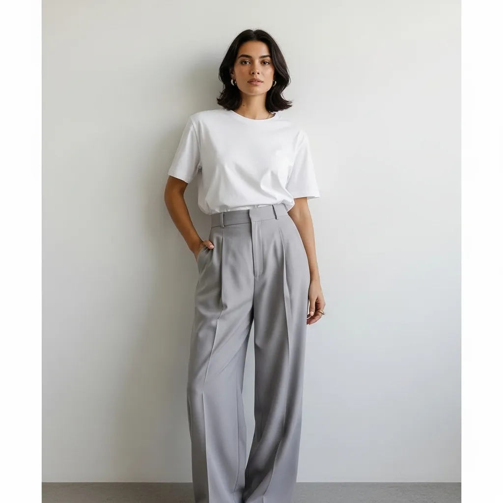 3. The Elevated Basics: Crisp Tee & Wide-Leg Trousers