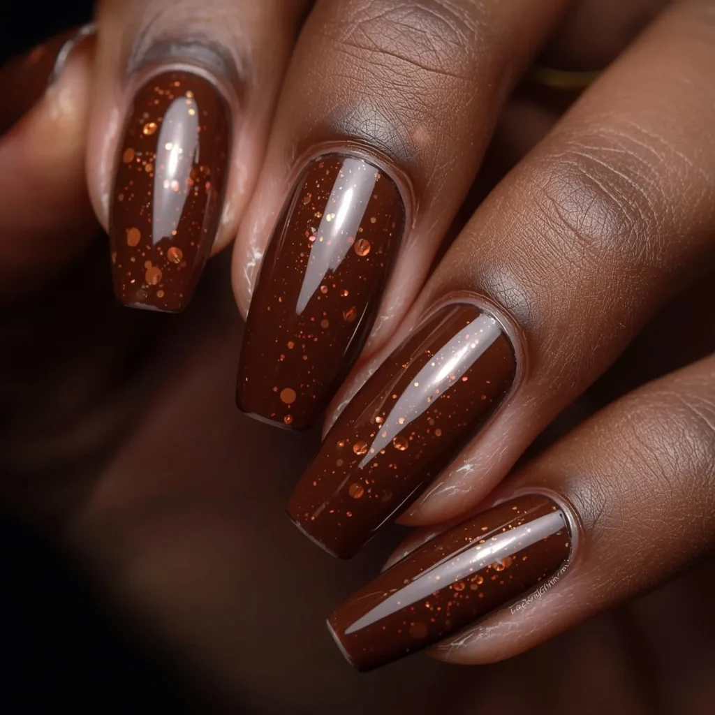 3. Glossy Chocolate Brown Nails