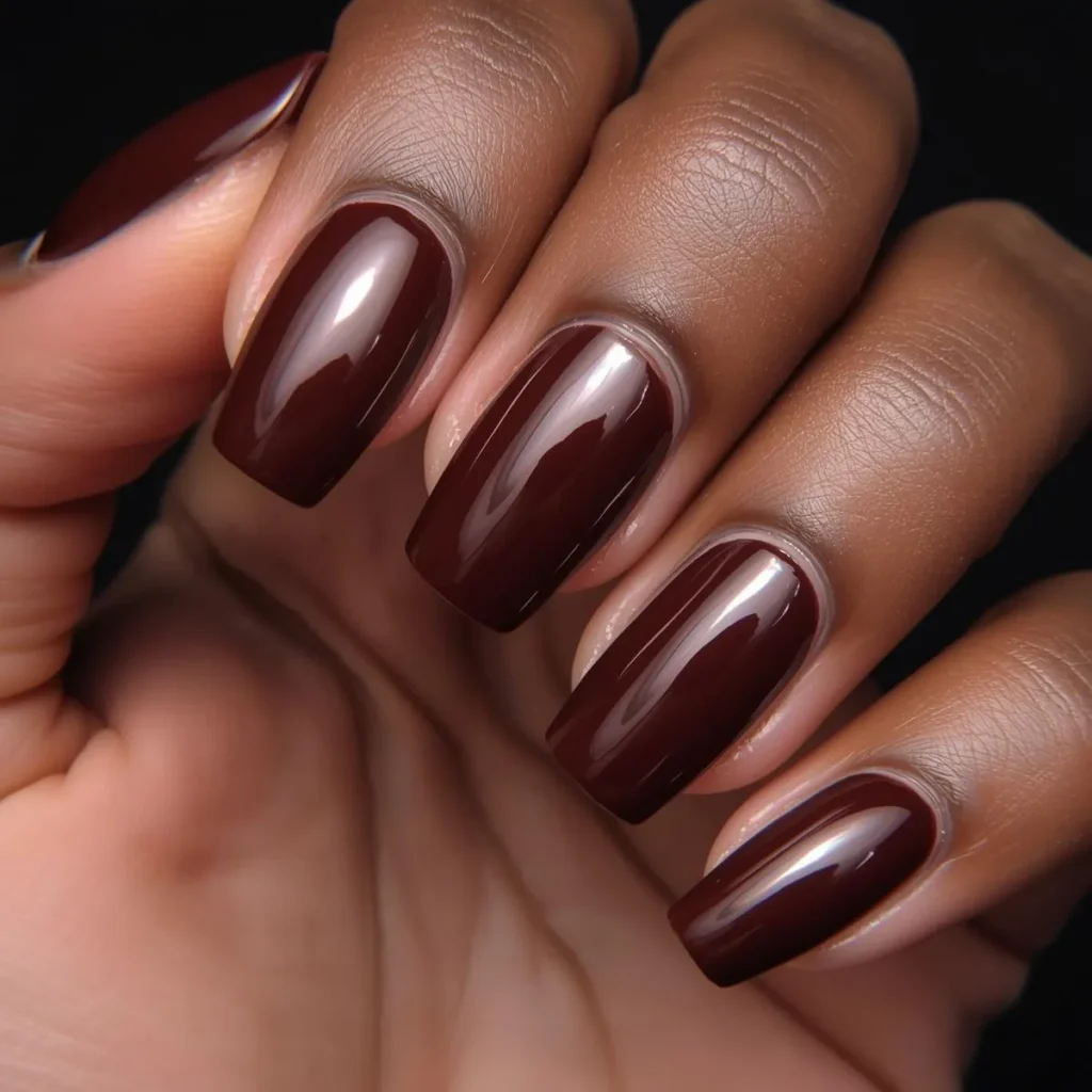 Chocolate brown nails are one of my favorite nails for dark skin tone. The glossy finish makes the color look rich and luxurious.