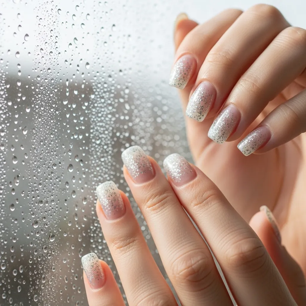 Embrace the “April showers” with a sparkling interpretation. I start with a deep, stormy blue or a soft grey polish on the base of my nail. Then, using a sponge, I dab a sheer silver or iridescent glitter polish towards the tips.