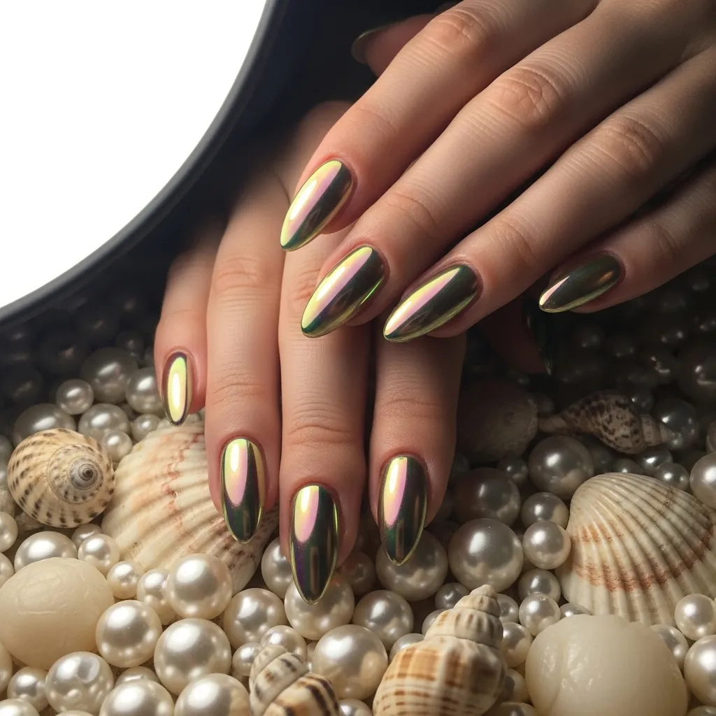 For a touch of elegance, nothing beats a pearlized or iridescent polish. These shades shift color in the light, showing hints of pink, gold, and green over a sheer base.