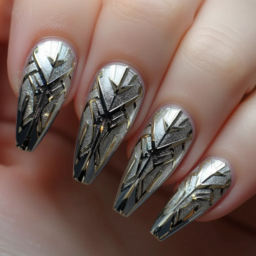 You can do this over any base color, but I love it over a clear or sheer nude for a futuristic look, or over black for high drama. It’s sleek, modern, and feels incredibly luxurious.