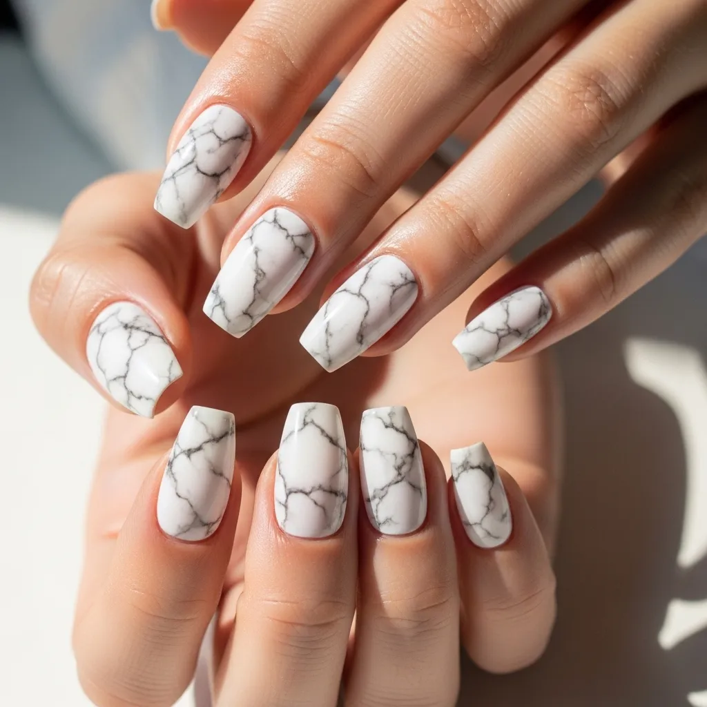 The technique is easier than it looks—a few drops of polish in water or a plastic bag can create the marbled effect you then transfer to the nail. It’s mystical, elegant, and absolutely captivating.