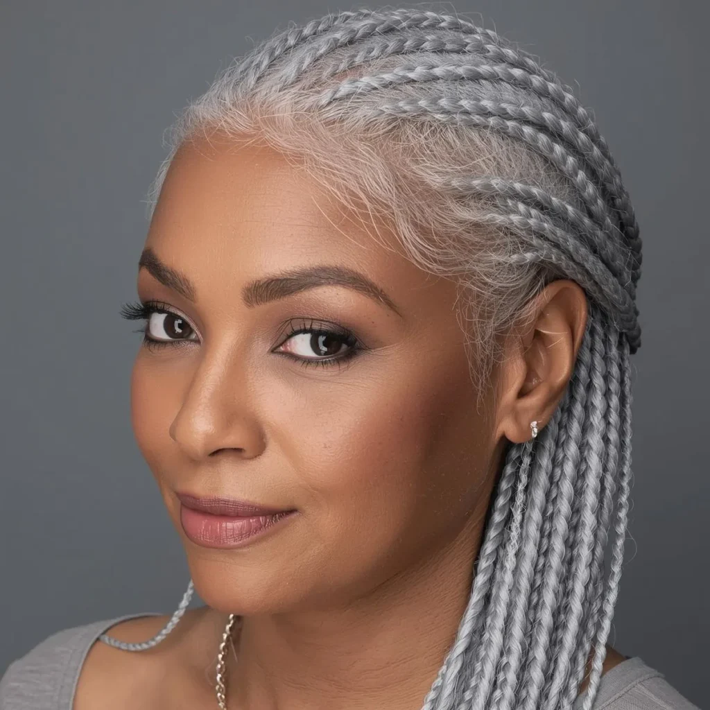 Embracing my gray hair with braids was empowering. It felt honest and beautiful.