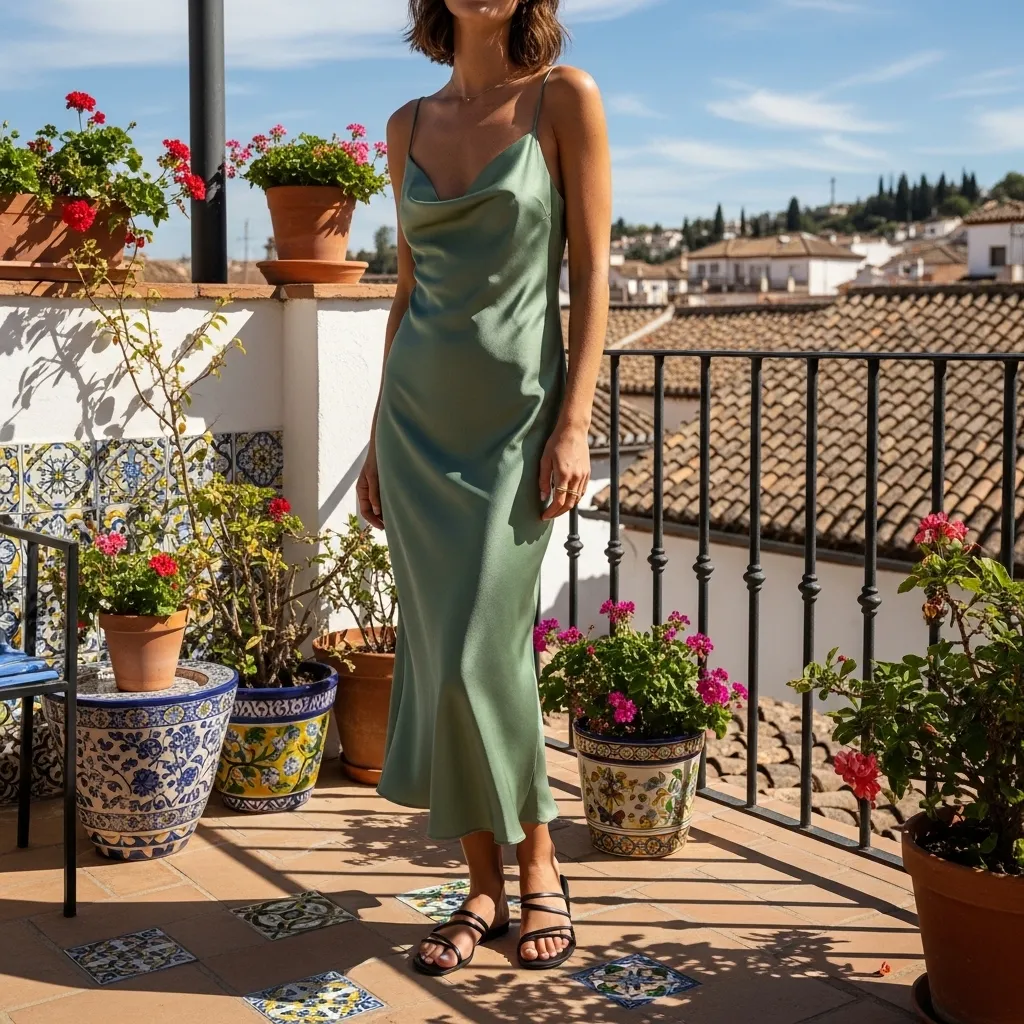 A silk or satin slip dress is the ultimate versatile piece. During the day, I layer it over a thin white t-shirt or wear it alone with chunky sneakers for an unexpected cool-girl vibe.