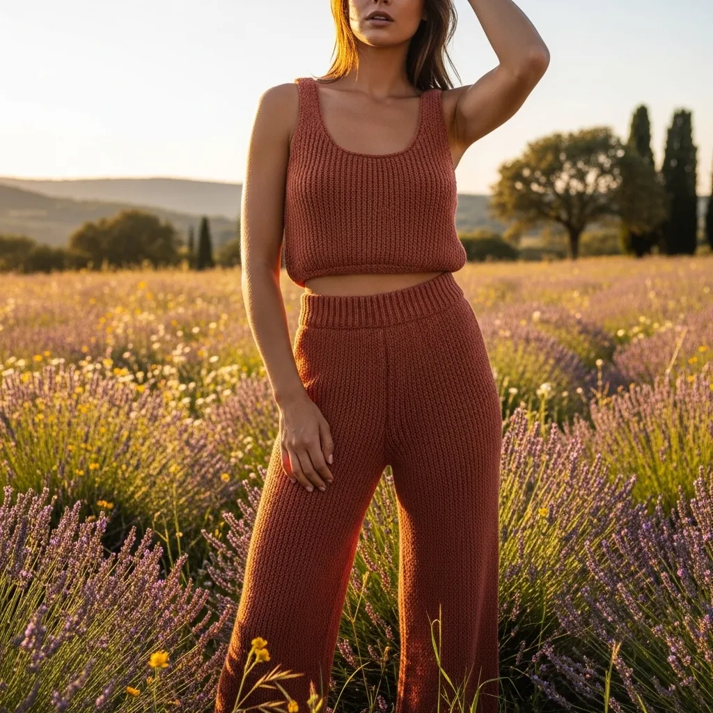 Matching sets are a secret weapon for easy packing and looking instantly polished. A ribbed knit tank and matching trousers in a light color (think cream, light grey, or sage) are my go-to.