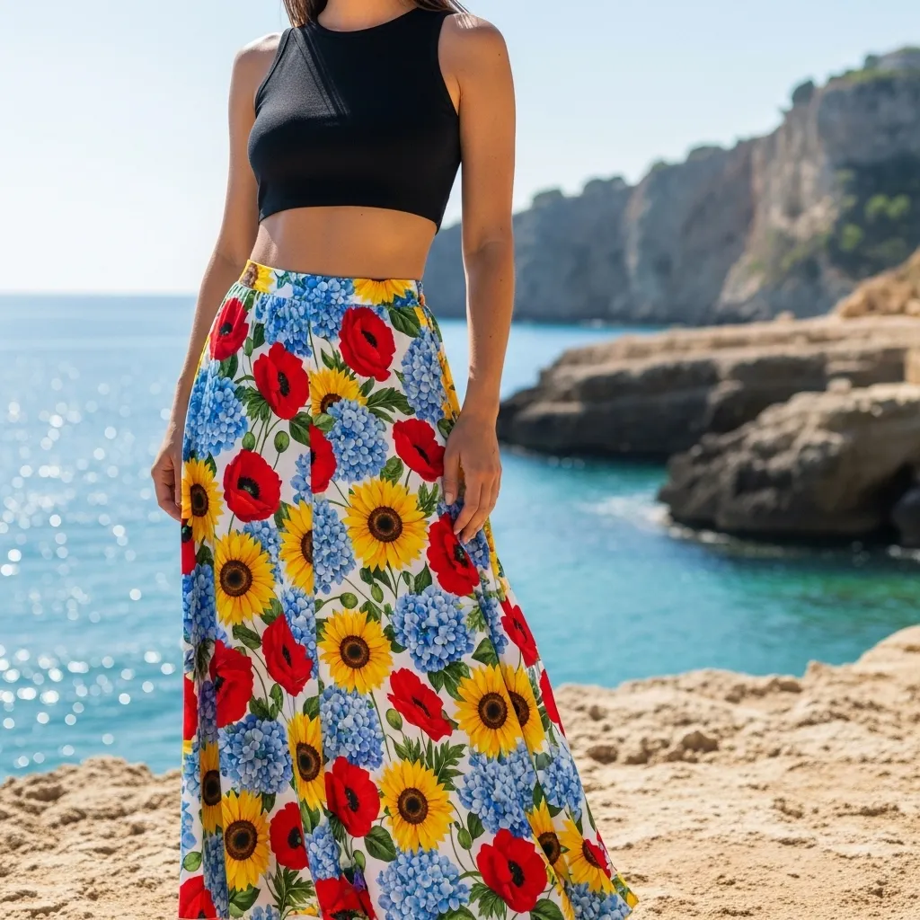 Whether it’s a bold floral print, a vibrant stripe, or a beautiful pleat, a statement skirt is a vacation staple. I opt for a flowy, breathable fabric that moves beautifully as I walk.