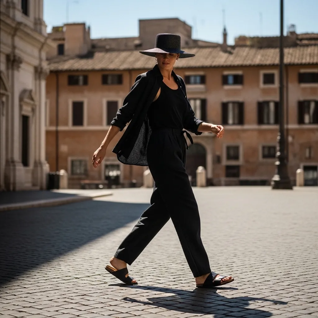 Never underestimate the power of a simple all-black outfit in Europe. A black tank, black tailored shorts or trousers, and black sandals look incredibly sleek and modern against ancient stone walls.