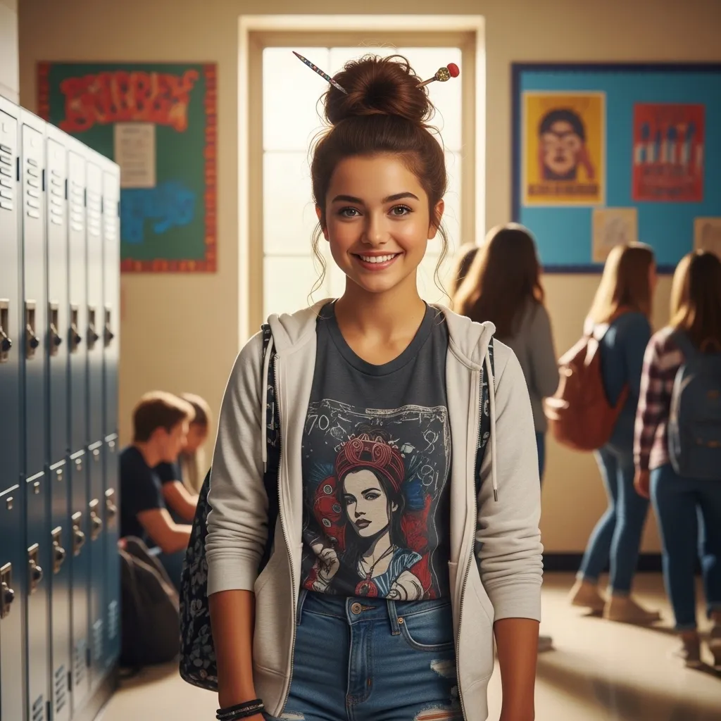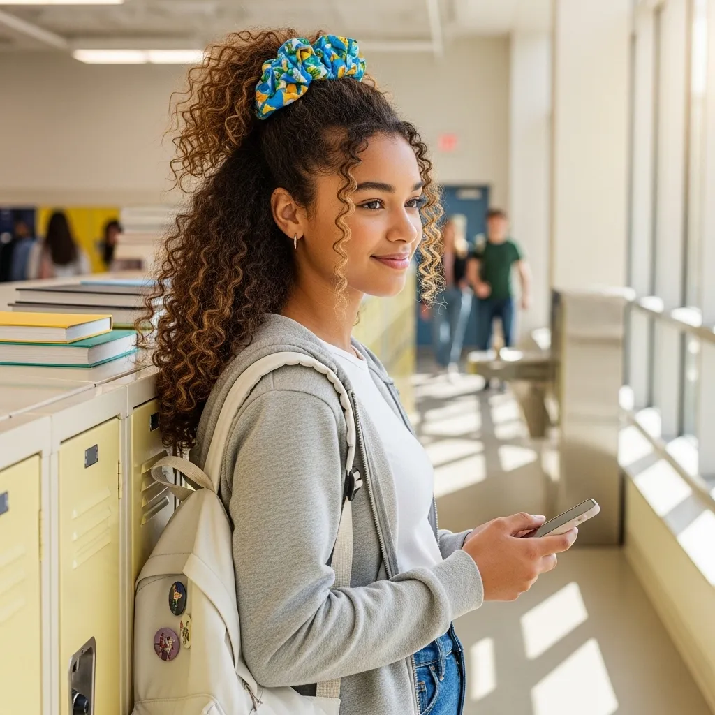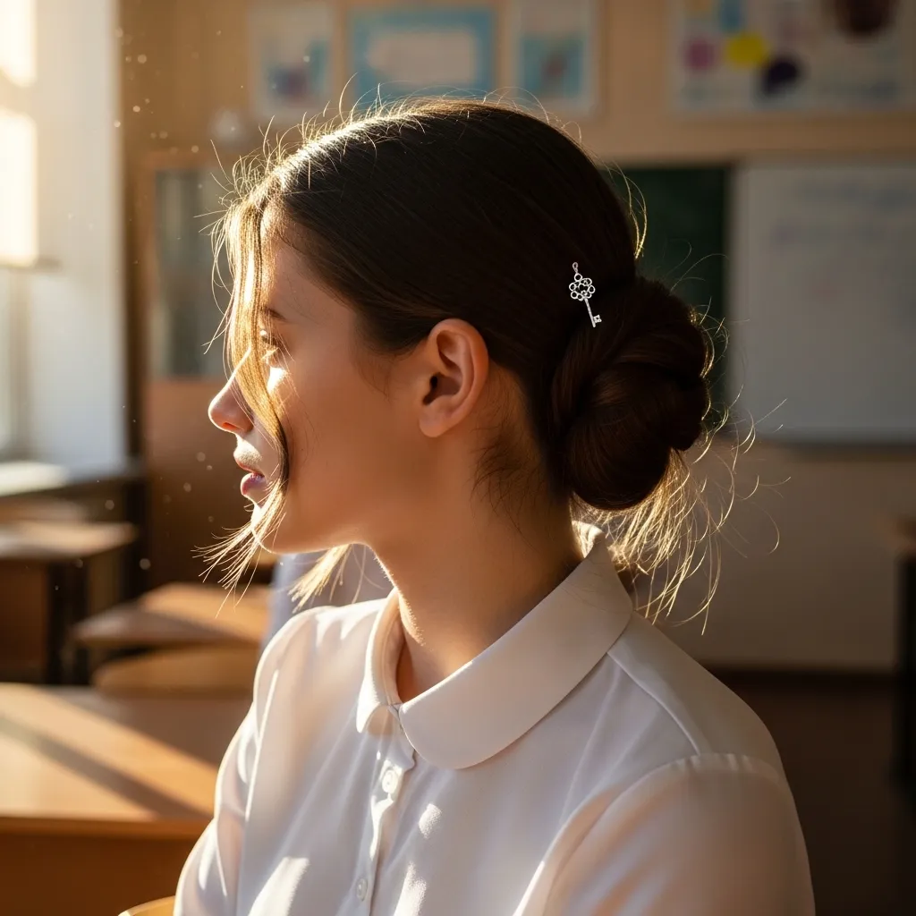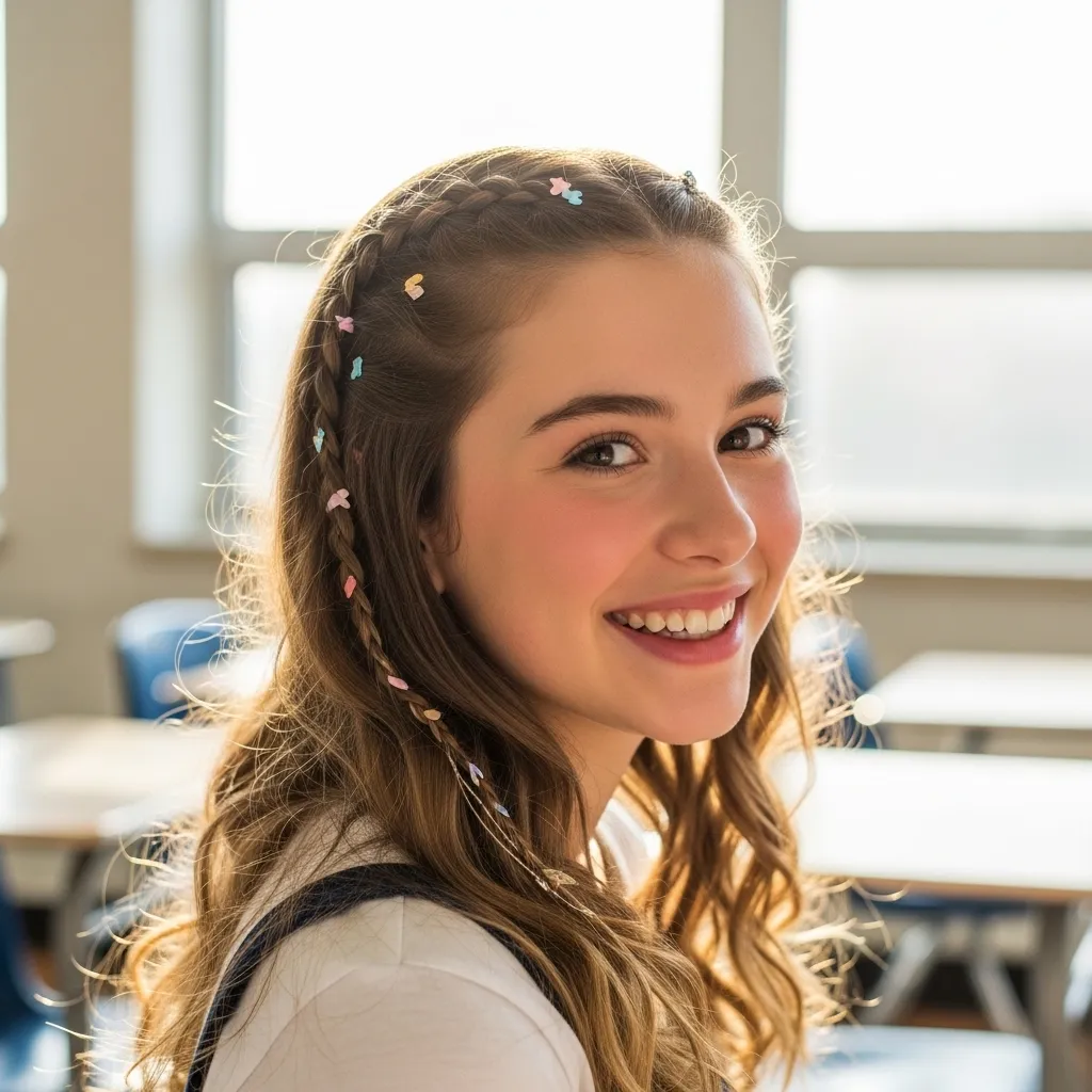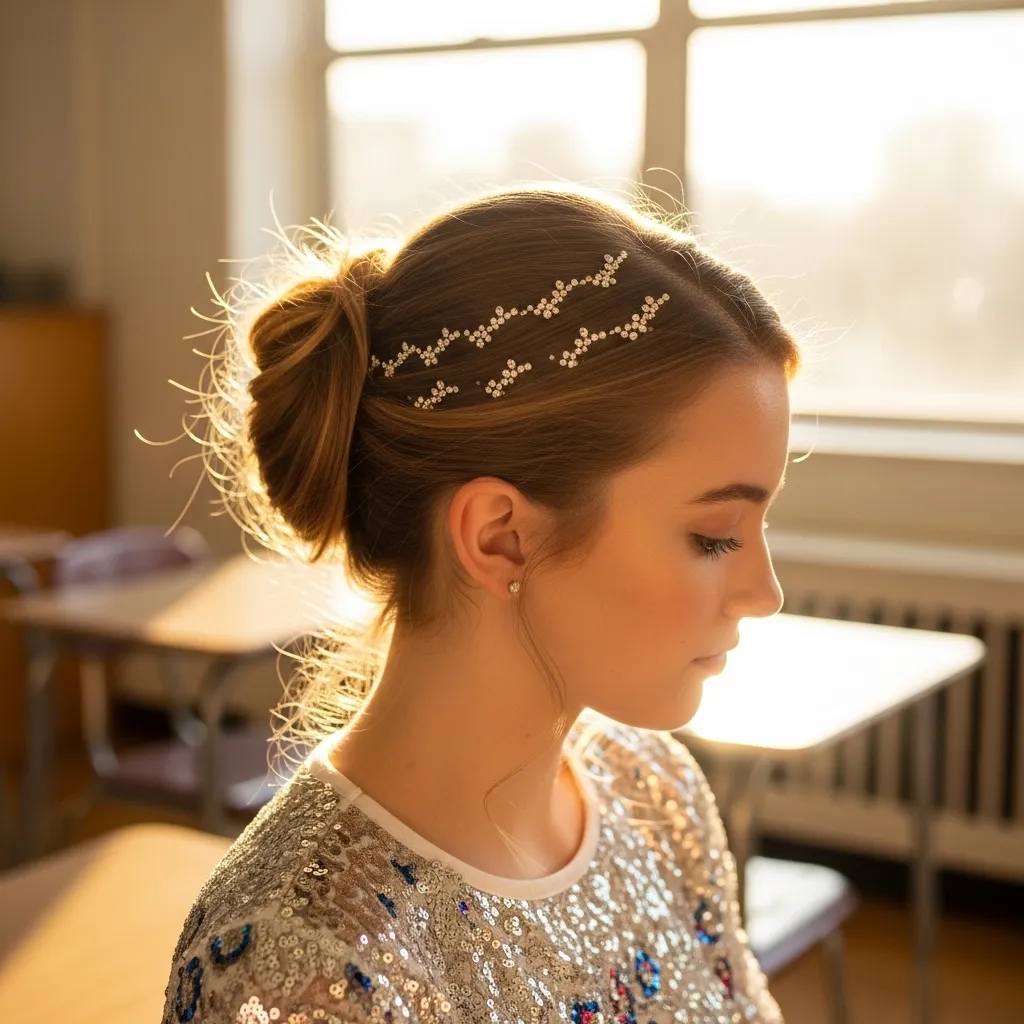 It creates a subtle, sparkling crown that catches the light perfectly in the school hallway. It’s glamorous but totally classroom-ready.