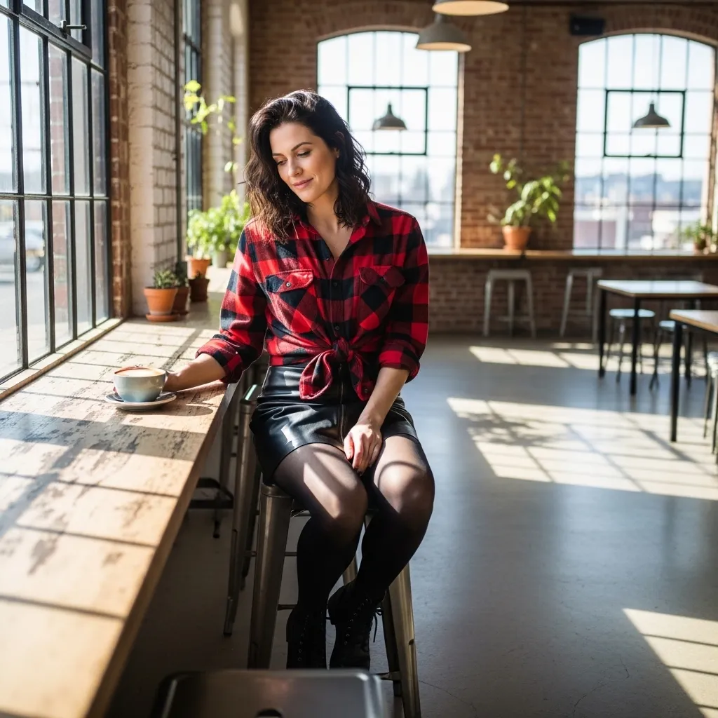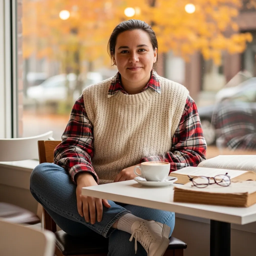Pair it with jeans or corduroy pants and boots. It’s a cozy, intellectual look that’s perfect for fall and winter. I love using a plaid oversized shirt for this—the pattern adds so much interest.