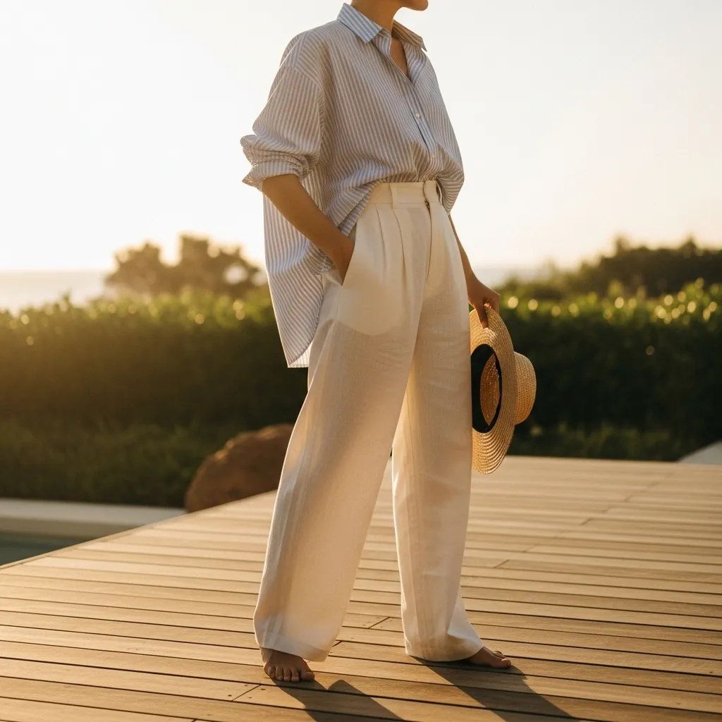 Don’t forget vacation style! An oversized linen or cotton shirt is the perfect beach or pool cover-up. Throw it on over your swimsuit. The breathable fabric protects your skin from the sun while looking effortlessly chic.