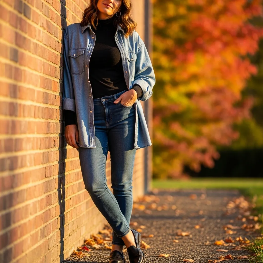 This is the ultimate cold-weather layering hack. Wear your oversized shirt unbuttoned over a fitted, thin turtleneck. The collars layered together look so sophisticated. You get all the warmth without any bulk.