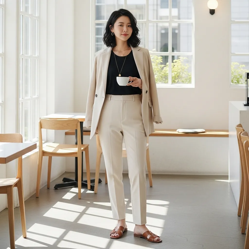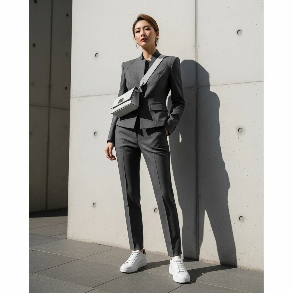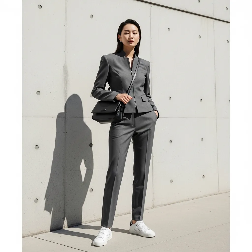 I make sure the jacket and pants are a perfect, tailored match. Then, I elevate it with minimalist accessories: a leather tote, simple hoop earrings, and clean white sneakers. It’s the ultimate comfortable errand-run outfit that still looks intentional.