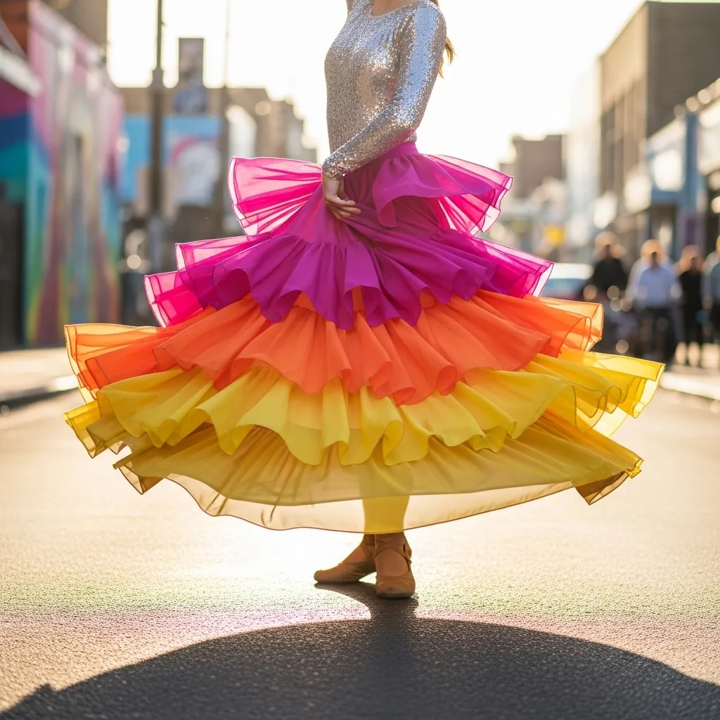 A tiered, ruffled skirt is a samba staple for a reason. The layers bounce and flow with every step, emphasizing the rhythm of your dance.