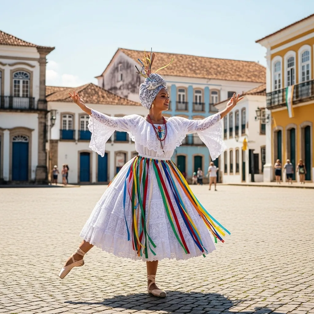 Pay homage to the Afro-Brazilian roots of samba with a Bahian-inspired look. This means a wide, circular skirt (*saia*) often made of lace or cotton, with a detailed, puffed-sleeve blouse.