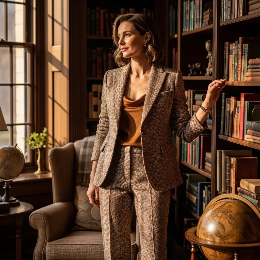 Channel classic, intellectual cool with a tweed suit. This textured fabric, often associated with Chanel, instantly elevates any look. It’s perfect for bridging seasons and adds a layer of rich visual interest.