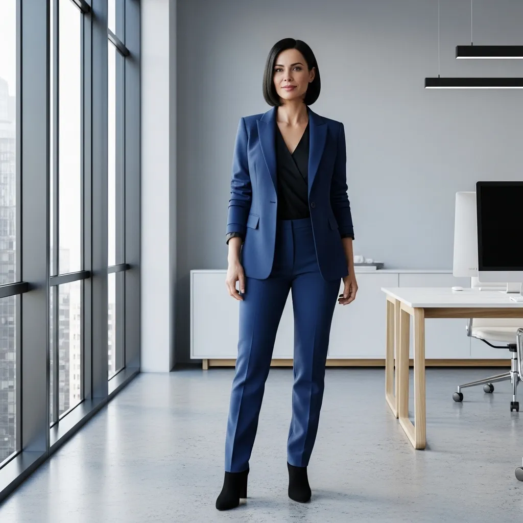 Focus on the fit: shoulders should sit perfectly, and trousers should have a clean line. I keep mine in classic black, navy, or gray. It’s the foundation my whole professional wardrobe is built on.