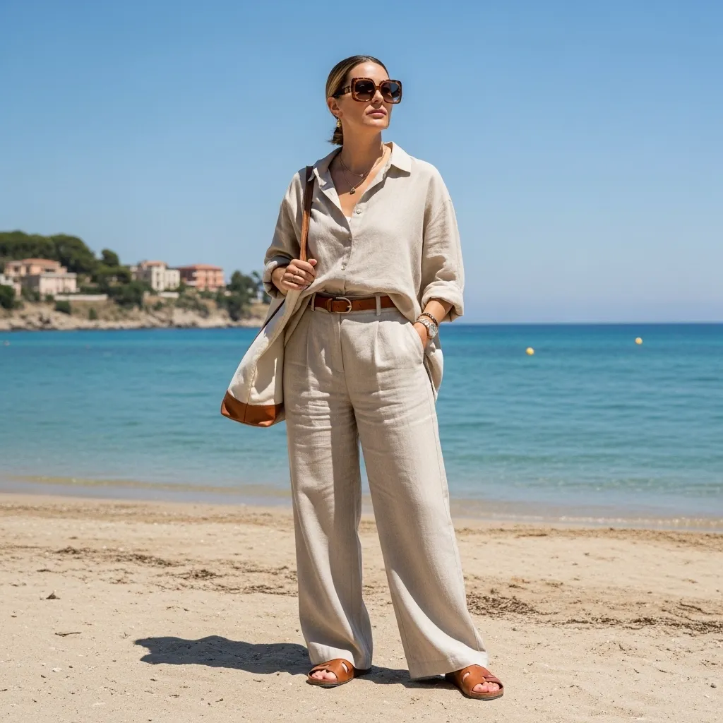 For coastal towns or hot summer days, linen is your best friend. An all-linen outfit in shades of white, oatmeal, or slate blue looks incredibly expensive and feels breezy.