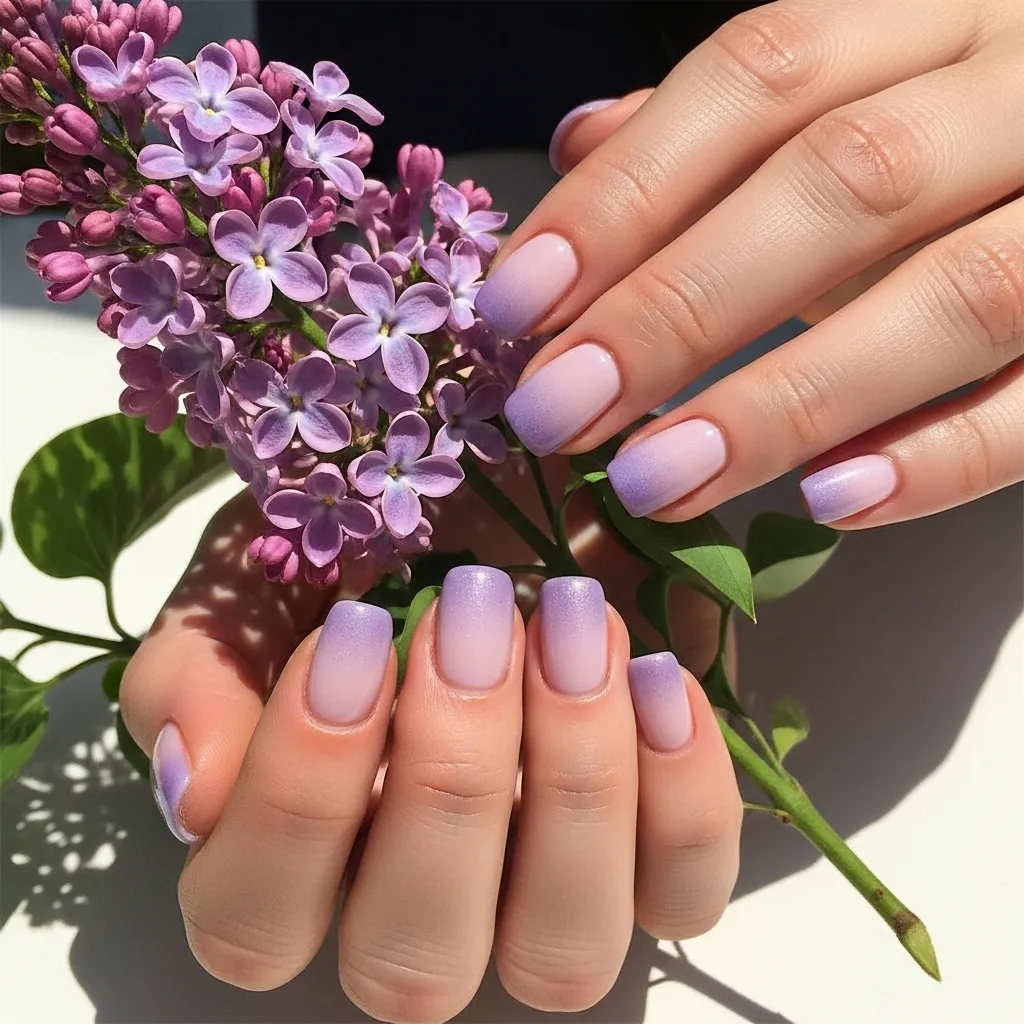 Capture the exact color of blooming lilac bushes with a soft ombré effect. Start with a pale lavender at your cuticle and fade it into a deeper, dusky purple at the tip.